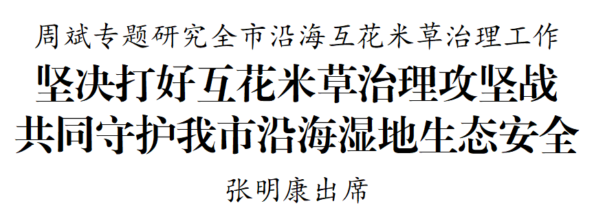 會上,市自然資源和規劃局通報全市互花米草治理工作情況,沿海各縣(市、區)和國家級自然保護區作交流發言。