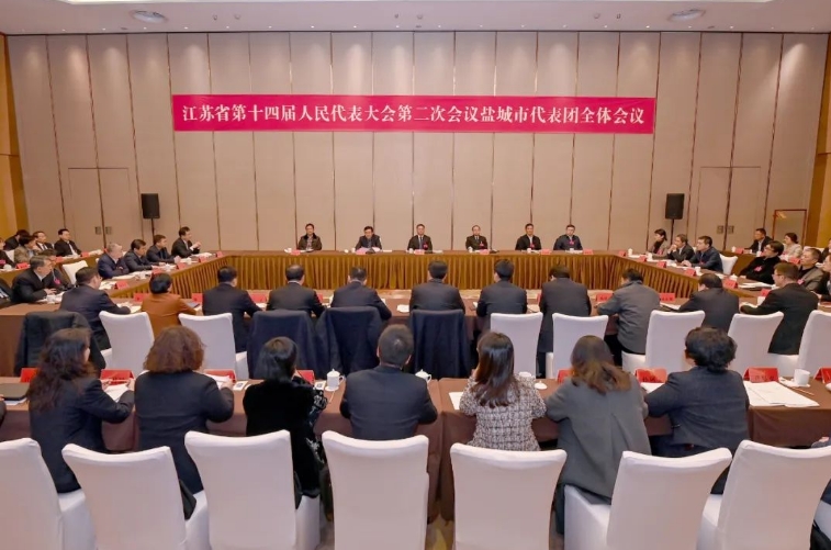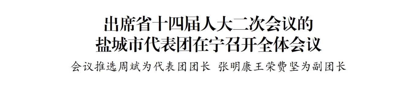 江蘇省第十四屆人民代表大會第二次會議將于1月23日上午在南京開幕。22日晚,鹽城市代表團在駐地召開全體會議,傳達學(xué)習(xí)省兩會黨員負責(zé)同志會議精神和省委書記信長星講話要求,推選代表團團長、副團長,宣布小組召集人名單,審議有關(guān)草案。