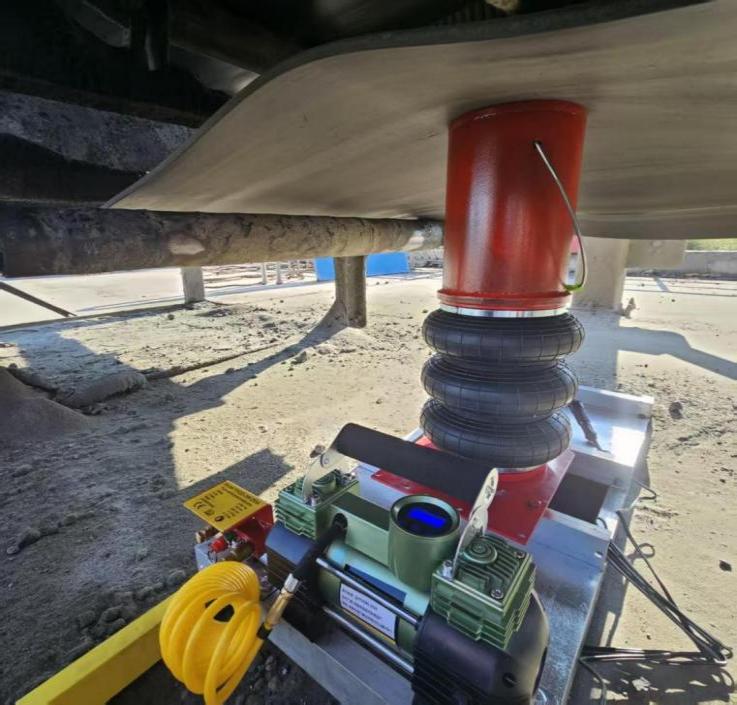 傳統(tǒng)皮帶機(jī)托輥更換作業(yè)長(zhǎng)期面臨耗時(shí)長(zhǎng)、勞動(dòng)強(qiáng)度大、安全風(fēng)險(xiǎn)高等突出難題,直接影響港口生產(chǎn)效率與設(shè)備維護(hù)成本。為解決這一難題,邱中冬帶領(lǐng)團(tuán)隊(duì)立足現(xiàn)場(chǎng)實(shí)際,成功研發(fā)出三托輥皮帶機(jī)輕量化氣囊頂升換輥系統(tǒng)。該系統(tǒng)采用航空鋁合金框架與高精度氣囊頂升技術(shù),結(jié)構(gòu)輕巧、舉升平穩(wěn),并配備紅外防傾倒傳感器,徹底改變了傳統(tǒng)換輥?zhàn)鳂I(yè)模式。改造后,僅需一人即可安全、便捷地完成拆裝作業(yè),單組托輥更換時(shí)間由原先大幅縮短至僅0.5小時(shí),每年可為每公里皮帶機(jī)節(jié)約設(shè)備停機(jī)成本超過(guò)1.5萬(wàn)元,實(shí)現(xiàn)了換輥?zhàn)鳂I(yè)的安全化、輕便化與高效化,為港口設(shè)備維護(hù)提供了極具推廣價(jià)值的創(chuàng)新解決方案。