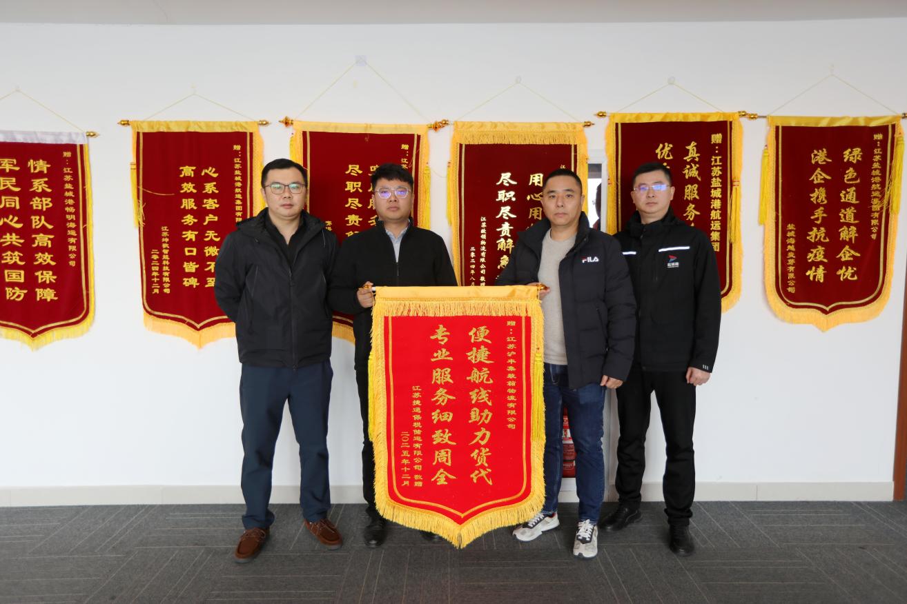 近日,航運集團接連收獲兩份滿載認可與情誼的暖心“禮物”——江蘇博匯紙業(yè)有限公司、江蘇捷通保稅儲運有限公司先后將燙金錦旗送至公司,不僅是對航運集團近期服務成效的高度肯定,更印證了其“十四五”期間暖心服務的堅實成果與深厚口碑。