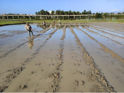在前期籌備階段,金色農(nóng)業(yè)聚焦細節(jié)、嚴控標準,逐一攻克關(guān)鍵環(huán)節(jié)。嚴把種子“入門關(guān)”,扎實開展種子預(yù)處理工作,通過科學(xué)規(guī)范的處理流程,有效保障種子發(fā)芽率與發(fā)芽質(zhì)量,為培育健壯秧苗夯實基礎(chǔ);精耕播種“精準度”,實施標準化精準播種作業(yè),同步推行插地牌編號管理模式,實現(xiàn)每一份育種材料從播種到收獲的全流程精準溯源,為后續(xù)性狀篩選與品系鑒定提供可靠保障;筑牢大田“承載基”,同步推進大田籌備工作,有序完成上水浸泡、旋耕整平等作業(yè),全方位做好秧苗移栽前的各項準備,確保插秧工作順利銜接。當前,金色農(nóng)業(yè)正聚焦秧池精細化管護、水肥供給精準調(diào)控、病蟲害綠色防控等關(guān)鍵環(huán)節(jié),全力保障南繁育種工作穩(wěn)步推進、提質(zhì)增效。