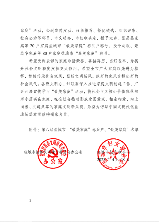 近日,從鹽城市婦女聯合會傳來好消息,在市第八屆鹽城市“最美家庭”評選活動中,鹽城港響水港區曾軍家庭榮獲鹽城市“最美家庭”稱號。